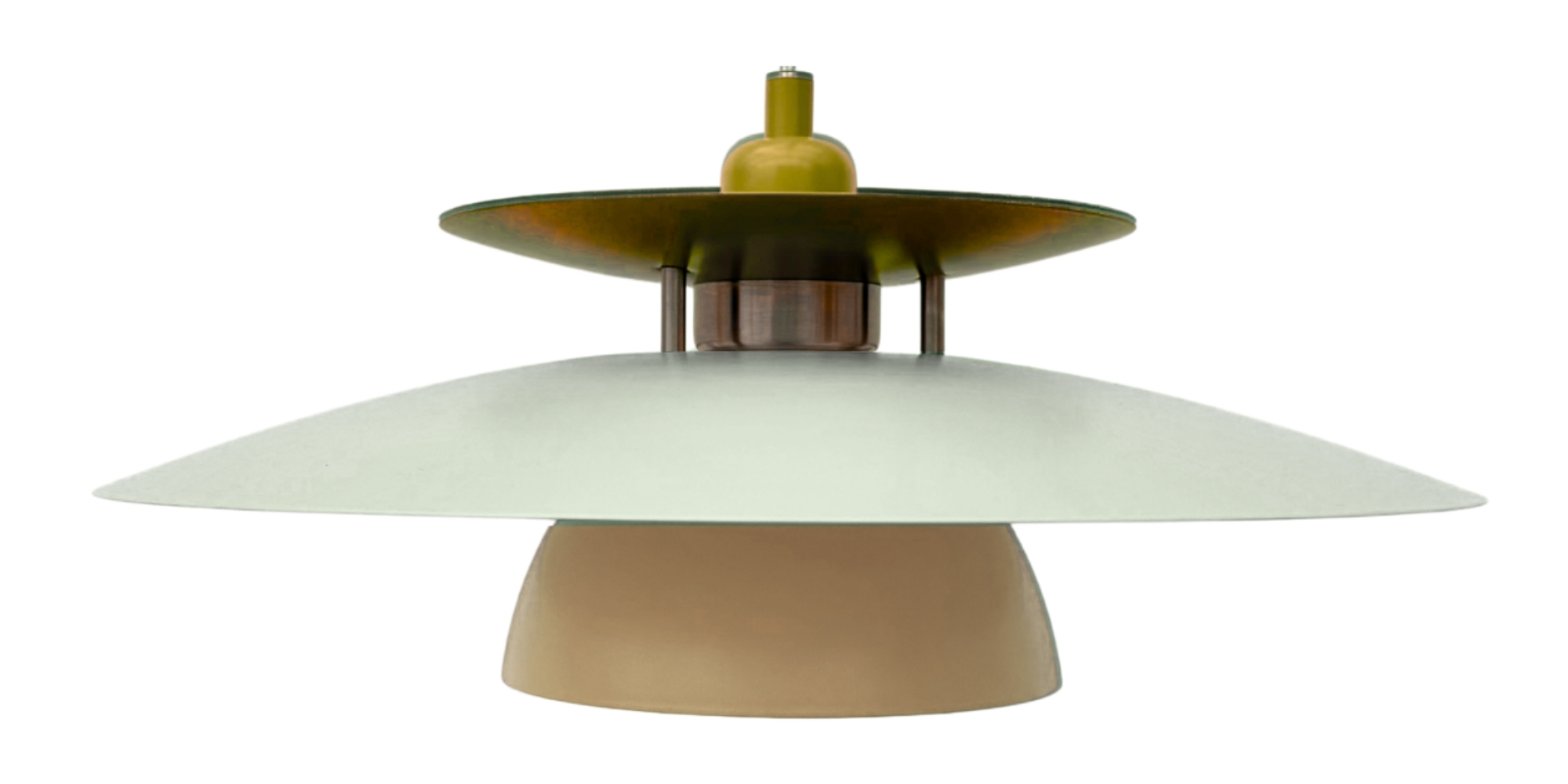 En tidløs lampe i børstet stål med nuancer af karrygul, beige og sand, der giver rummet en let og elegant varme med et strejf af luksus. Ø43 cm og designet til at sprede lyset blødt og levende.