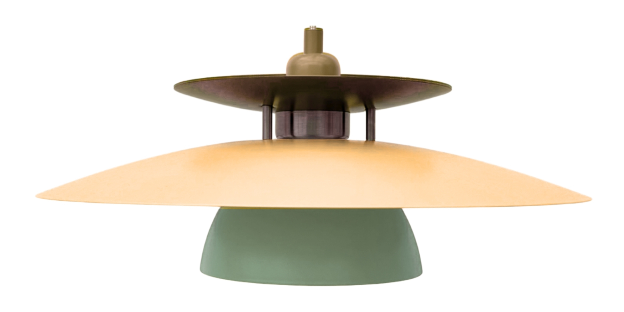En tidløs lampe i børstet stål med nuancer af nougat brun, gylden orange og støvet grøn, der skaber en varm og levende stemning med et naturligt, gyldent udtryk. Ø43 cm og designet til at sprede lyset blødt og levende.