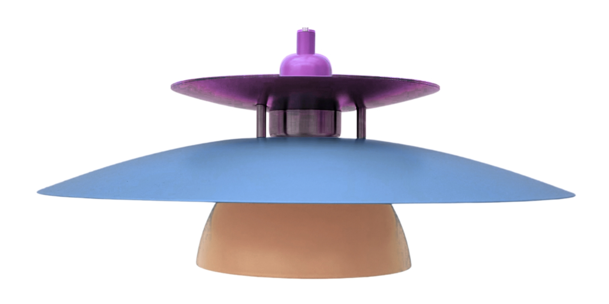 En tidløs lampe i børstet stål med nuancer af lilla, himmeblå og fersken, der skaber en varm og rolig stemning med et blødt, solnedgangsinspireret udtryk. Ø43 cm og designet til at sprede lyset blødt og levende.